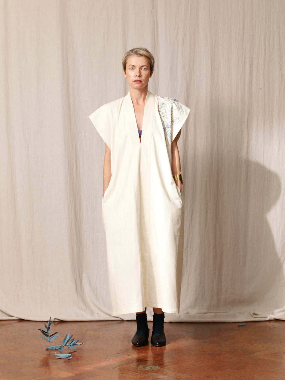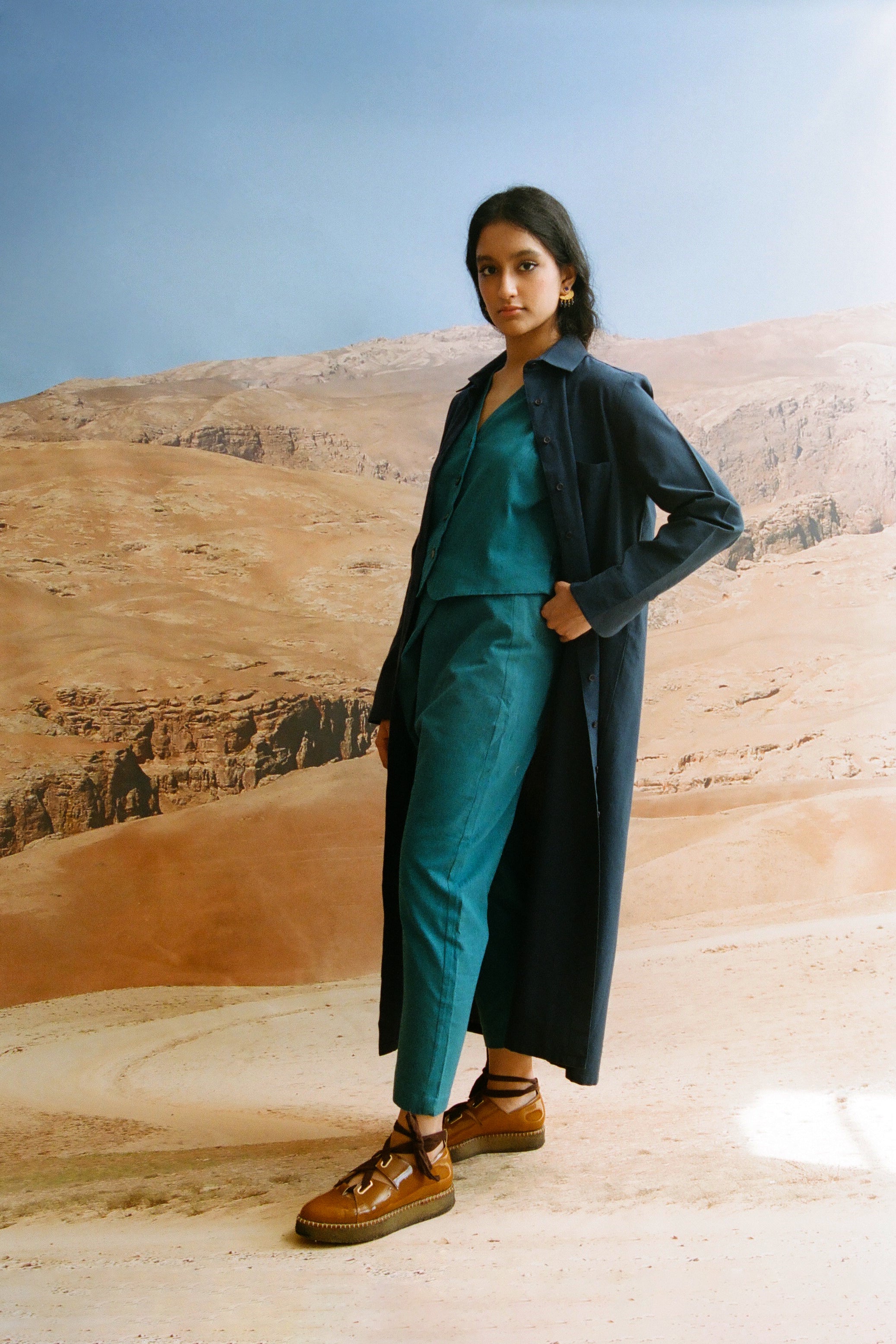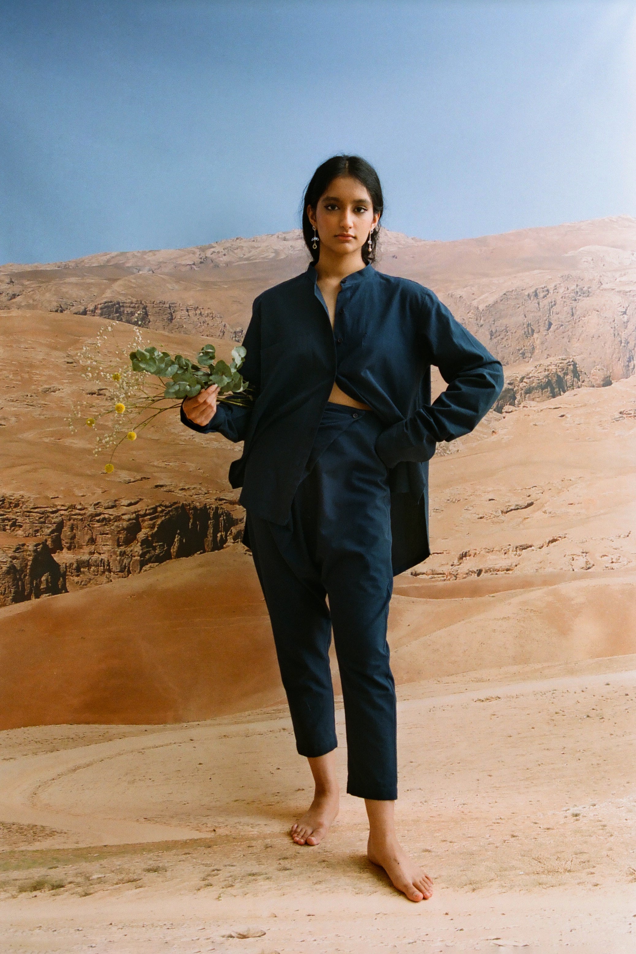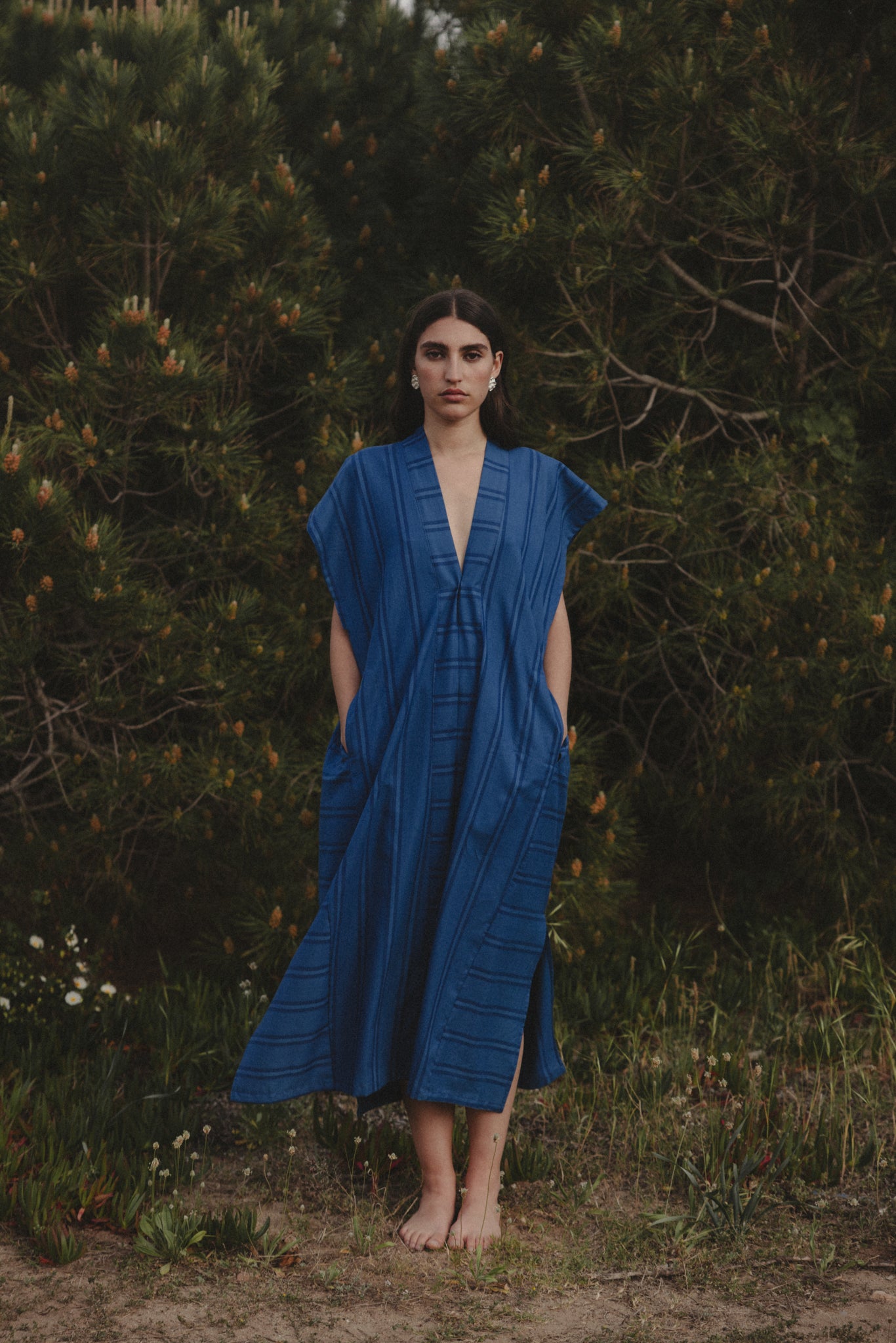Some handwoven by communities in India and Pakistan, others grown and woven locally in Spain. Natural indigo dyes. Hand embroideries done in house in Barcelona.