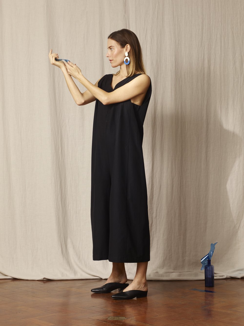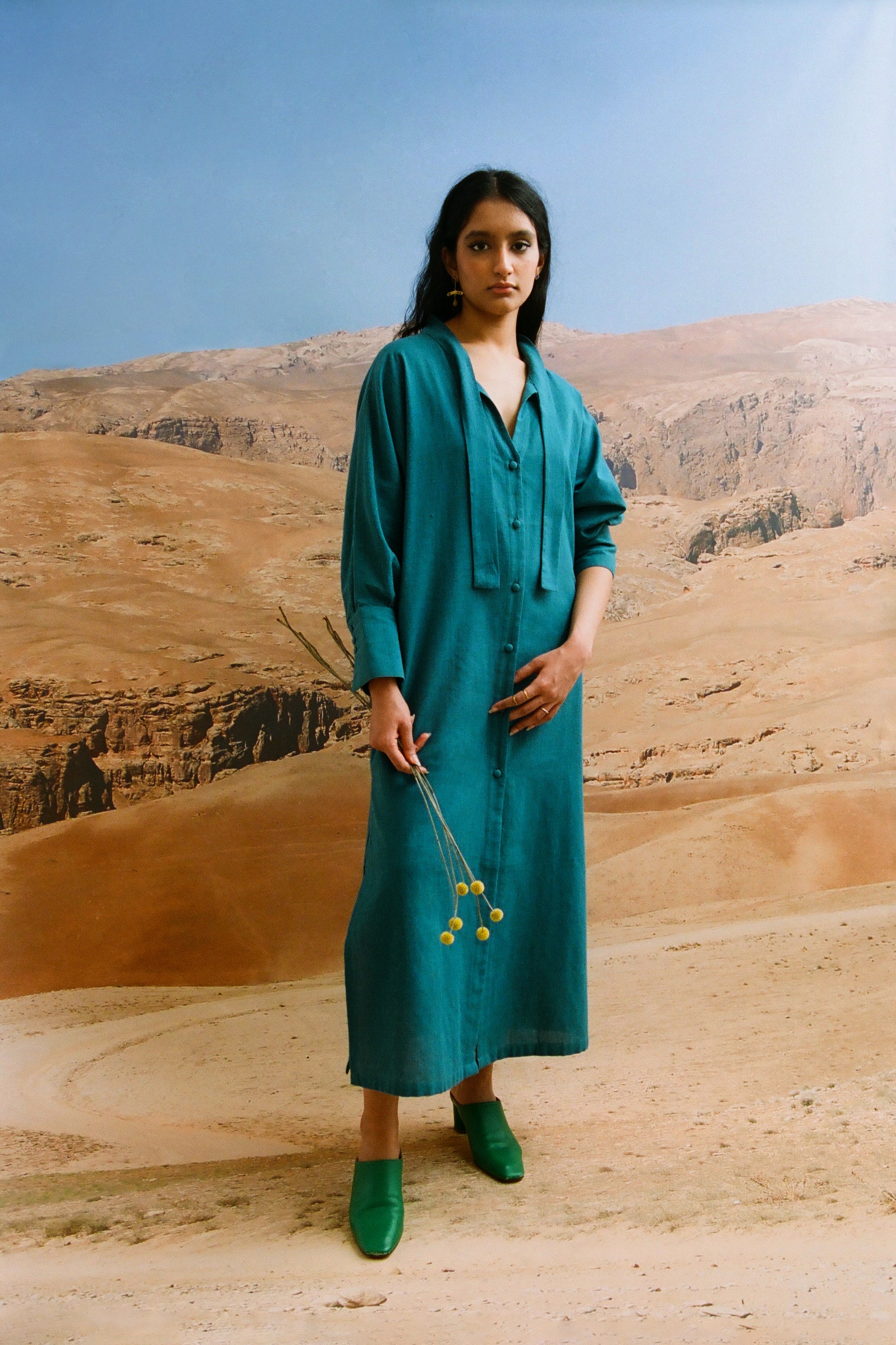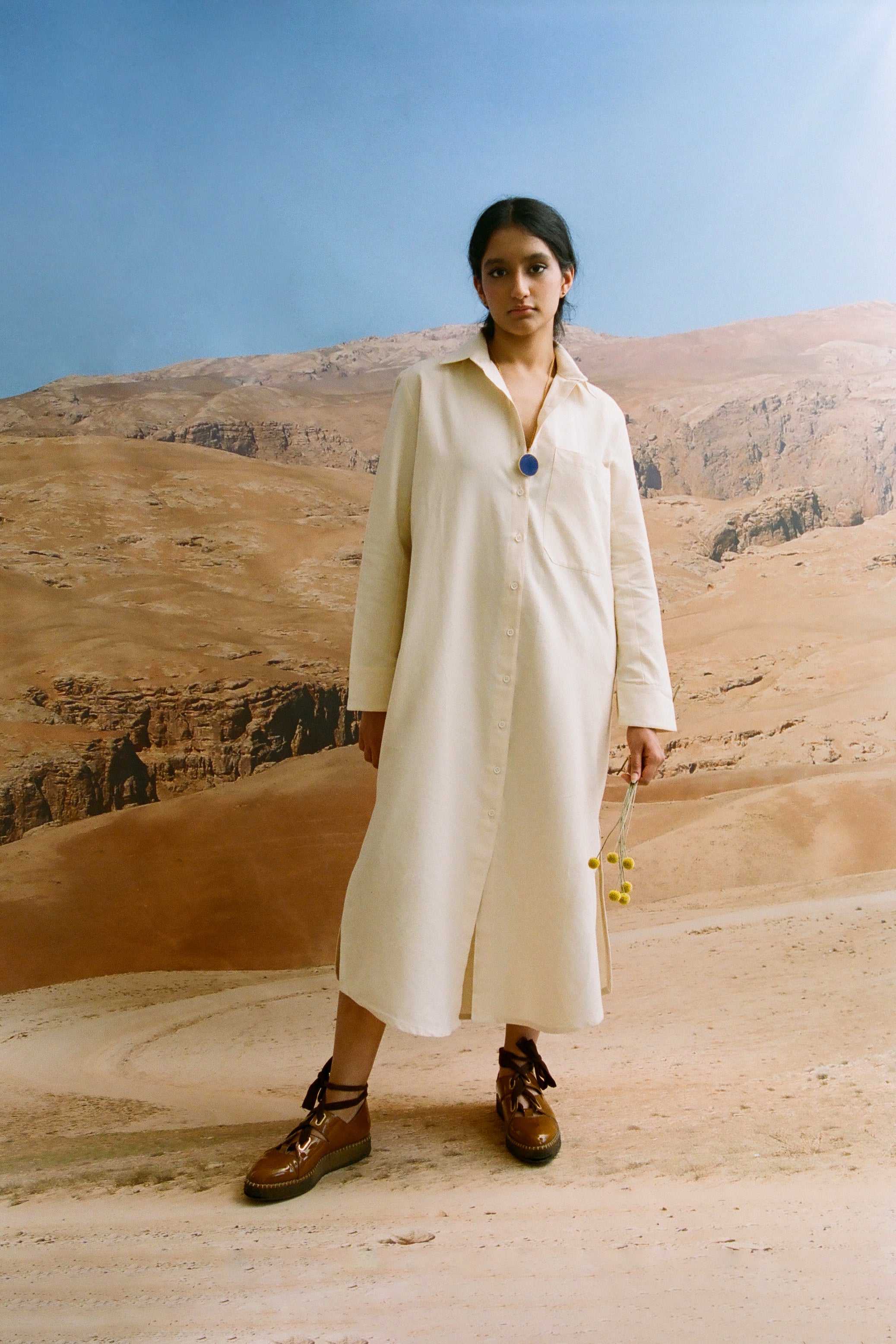 Some handwoven by communities in India and Pakistan, others grown and woven locally in Spain. Natural indigo dyes. Hand embroideries done in house in Barcelona.