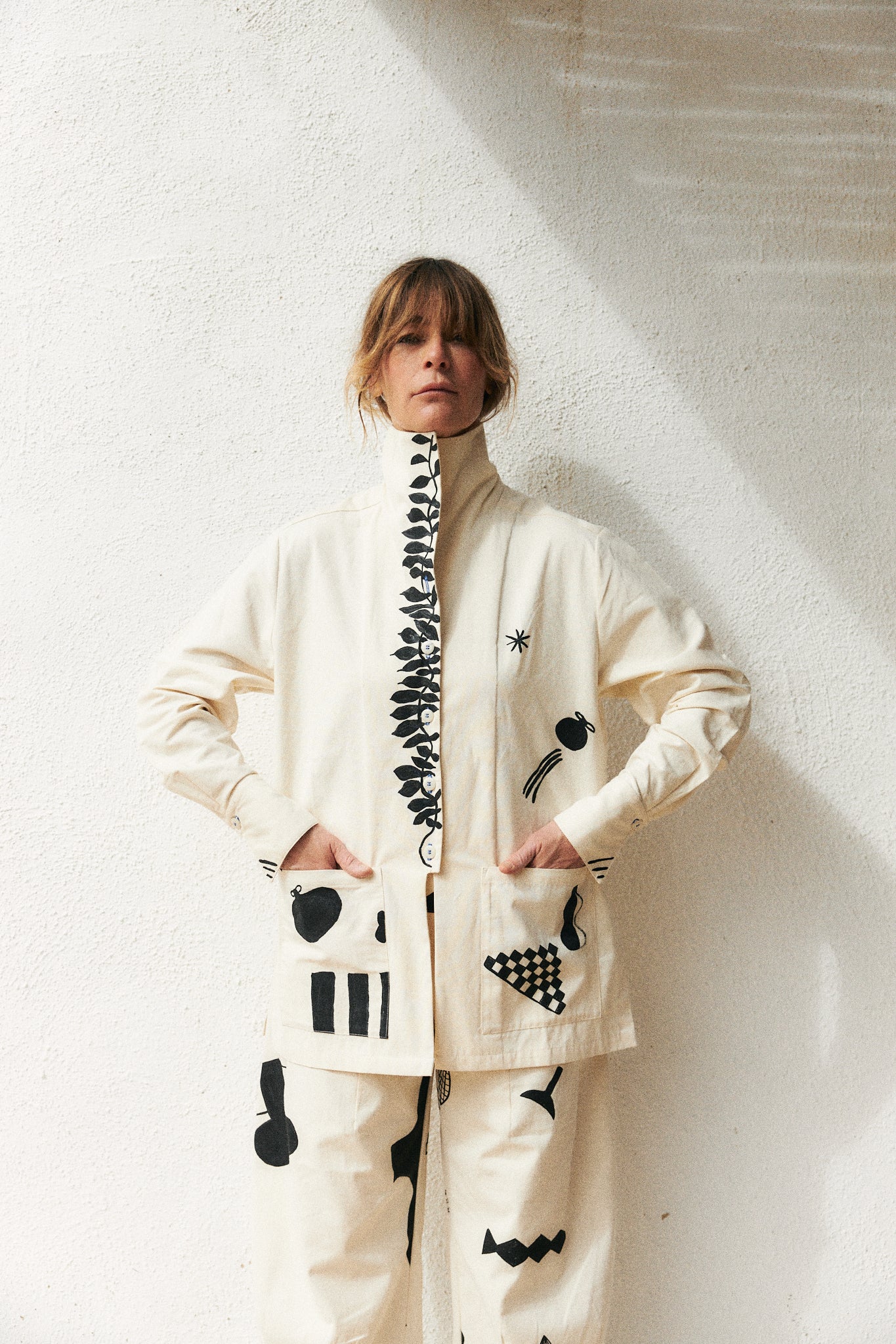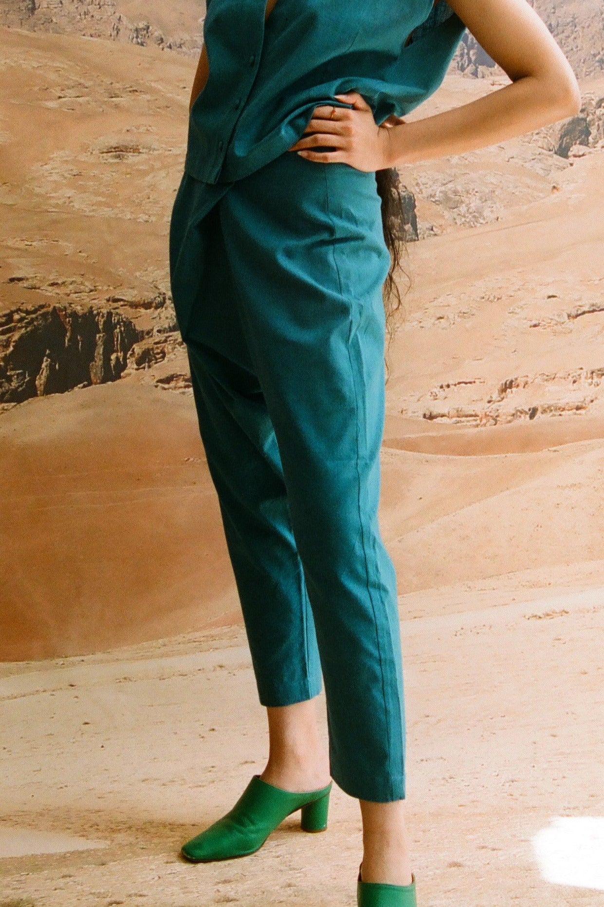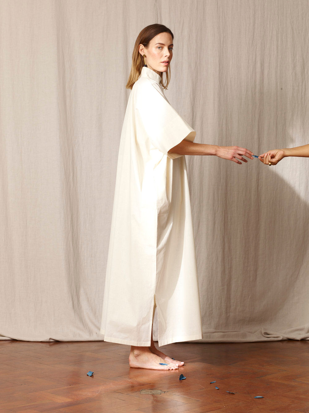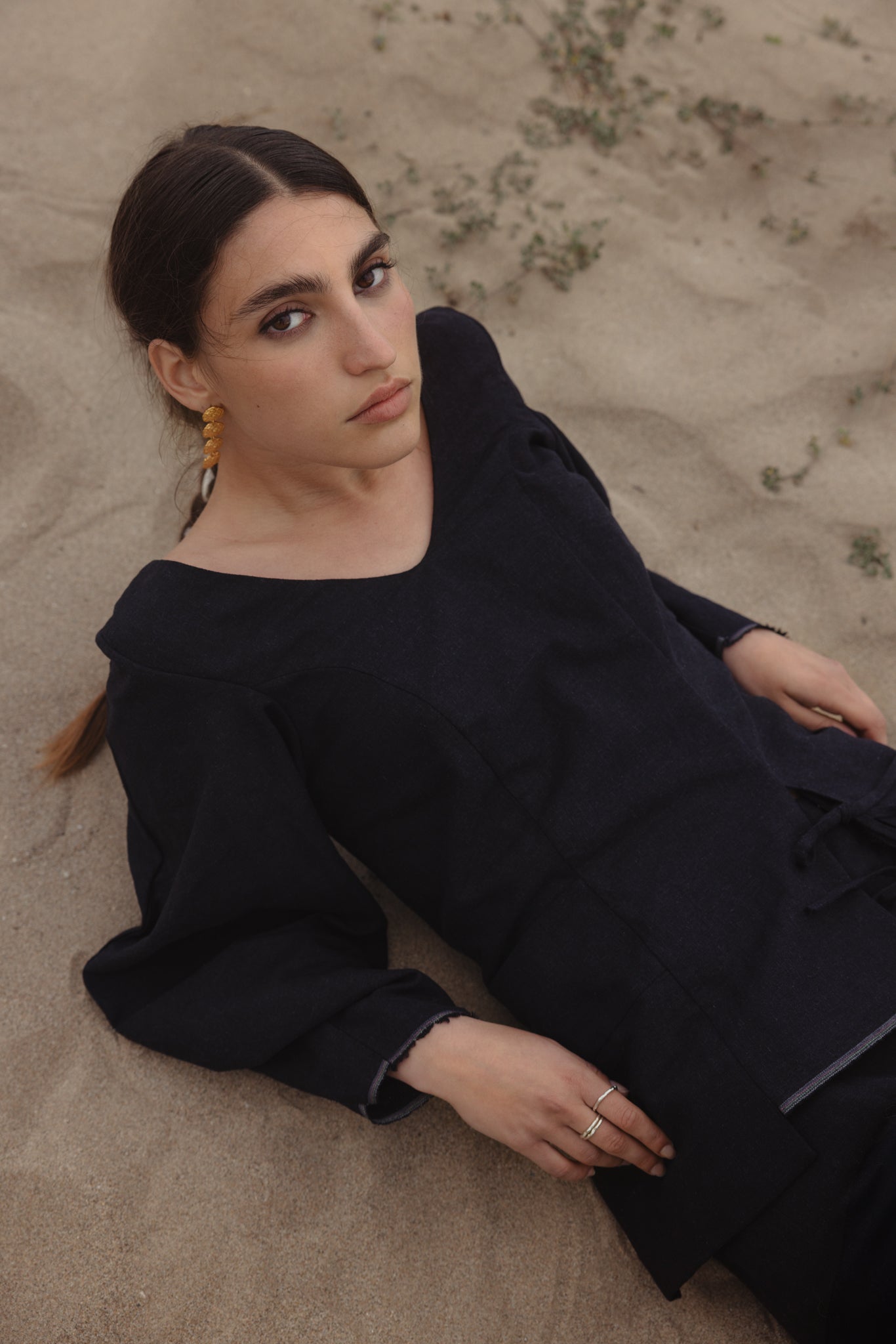 Some handwoven by communities in India and Pakistan, others grown and woven locally in Spain. Natural indigo dyes. Hand embroideries done in house in Barcelona.