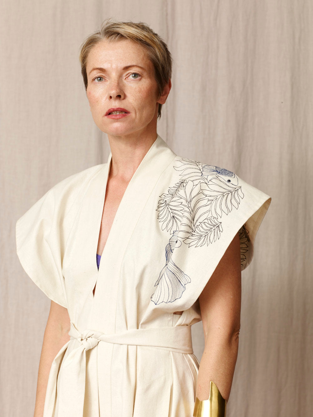 Each piece has been hand made with the utmost care by our master craftspeople using traditional crafts such as hand embroidery and fabric crushing.