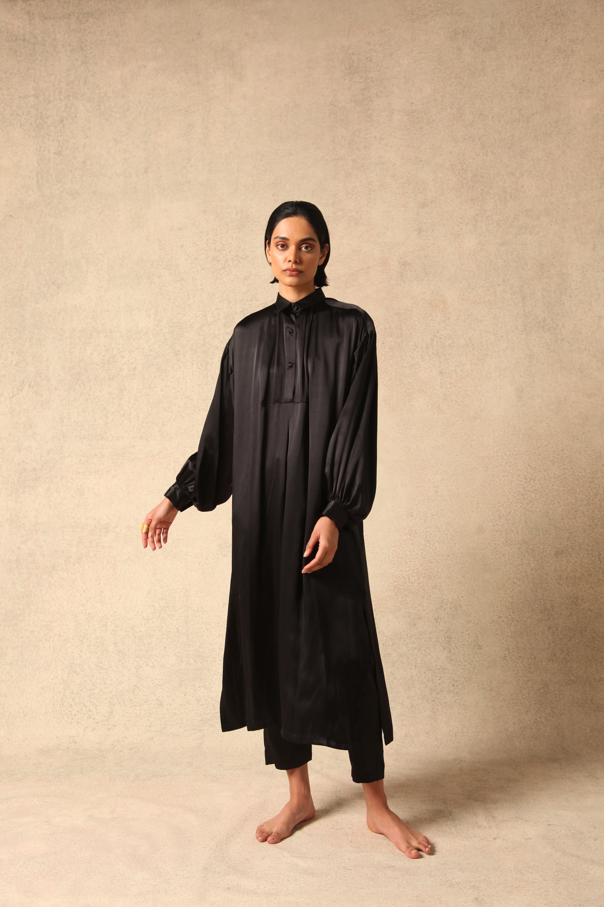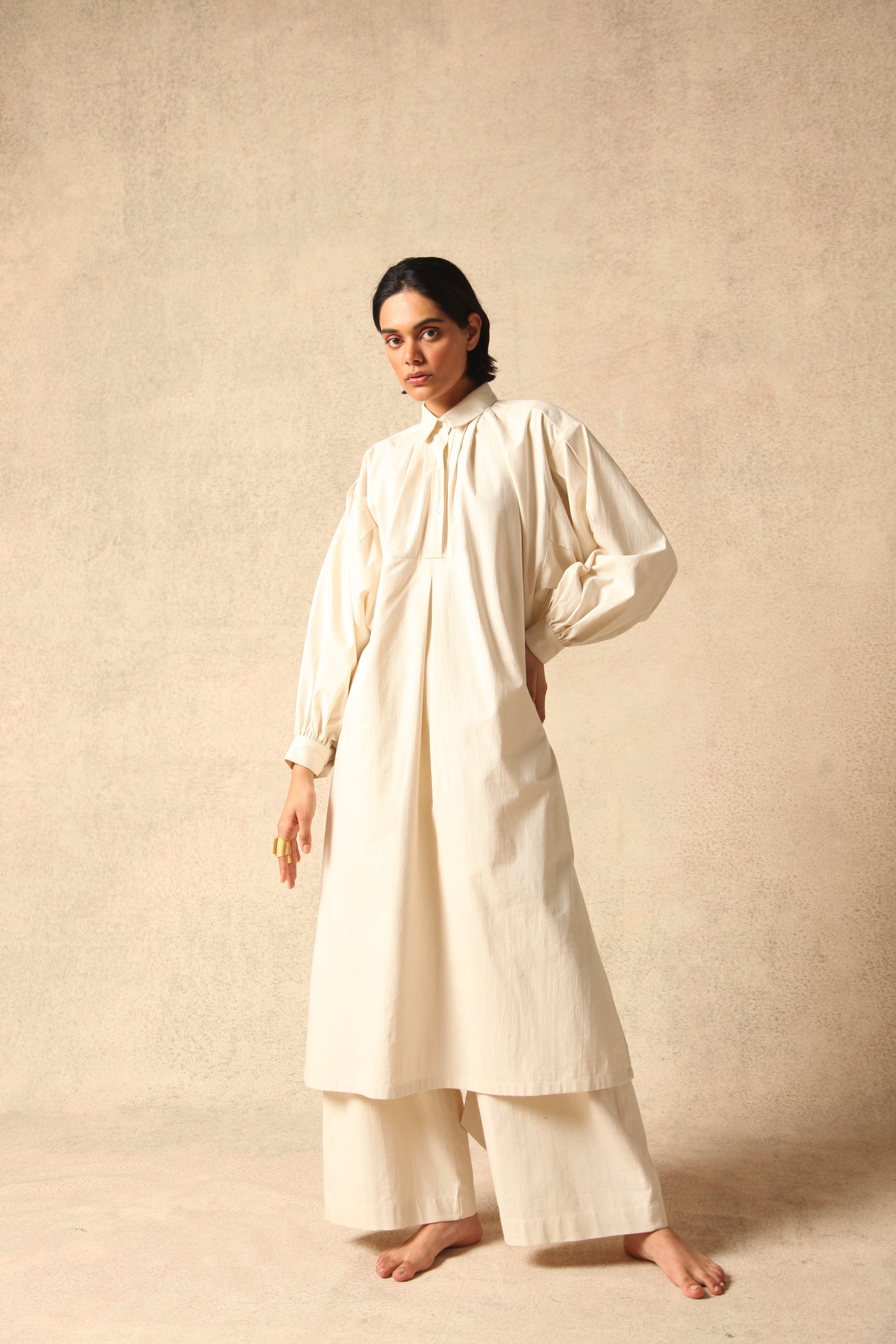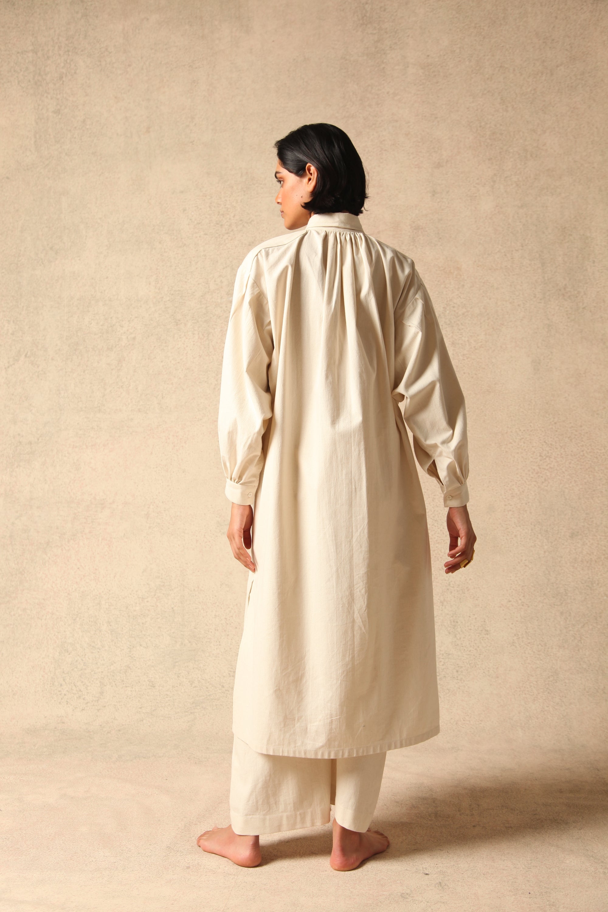 A collection inspired by locally sourced textiles, "Khaddar" cotton and "Karandi" silk, from Pakistan. These textiles are traditionally worn by men.