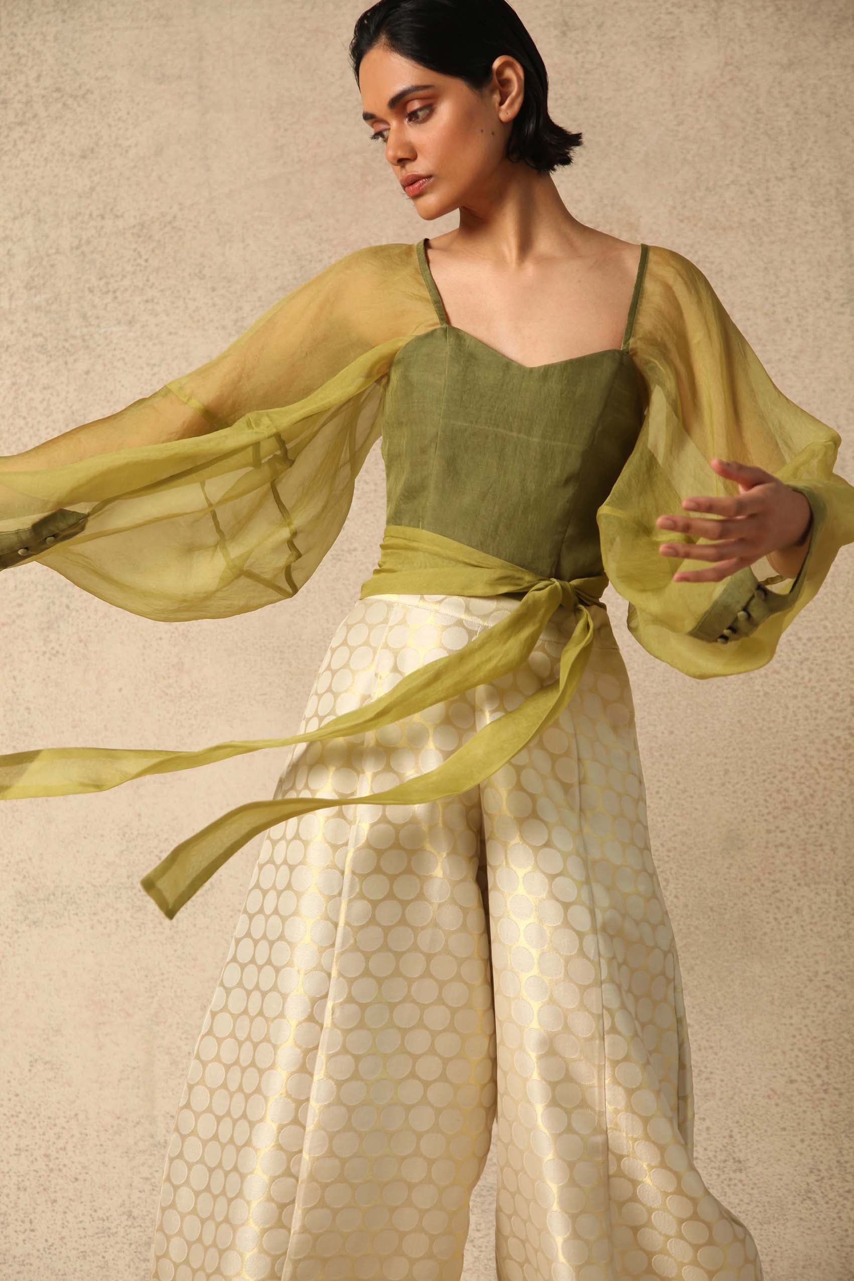 This collection includes rich fabrics hand woven by the unsung master craftsmen who live and work in this particular neighbourhood- Banaras.