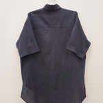 El delicado bordado de la marca de los creadores en la parte posterior en azul oscuro celebra a nuestros artesanos y su increíble artesanía. El gran bolsillo circular interior para guardarlo está inspirado en las camisas que usan tradicionalmente los hombres en el norte de Pakistán y Afganistán.