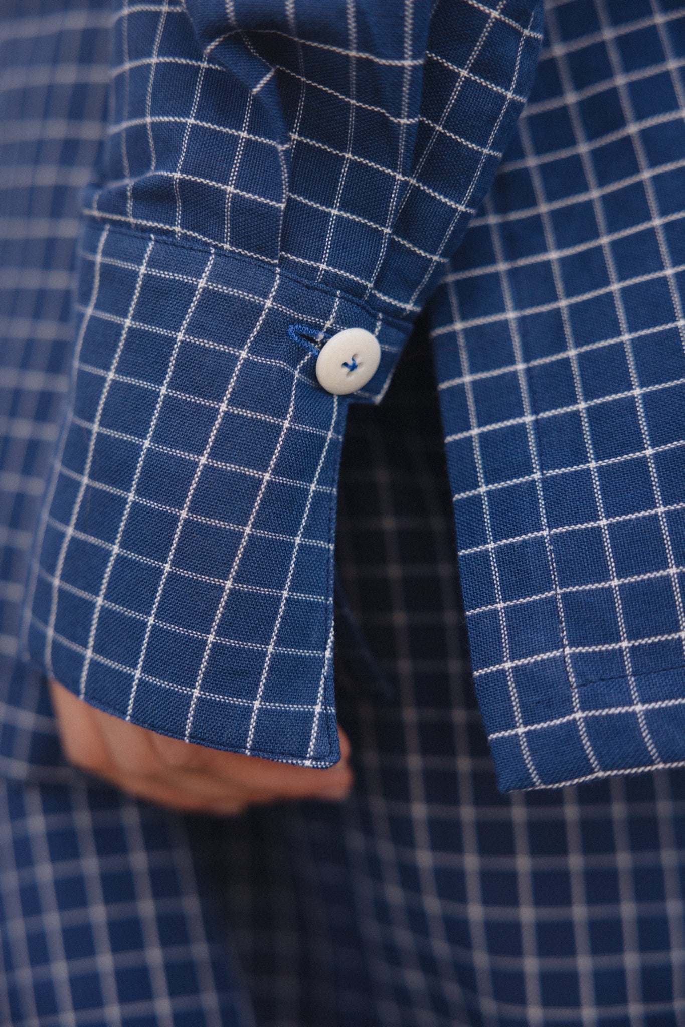The Tito jacket is made from a handwoven cotton check made lovingly by the SRSC school in Pakistan.